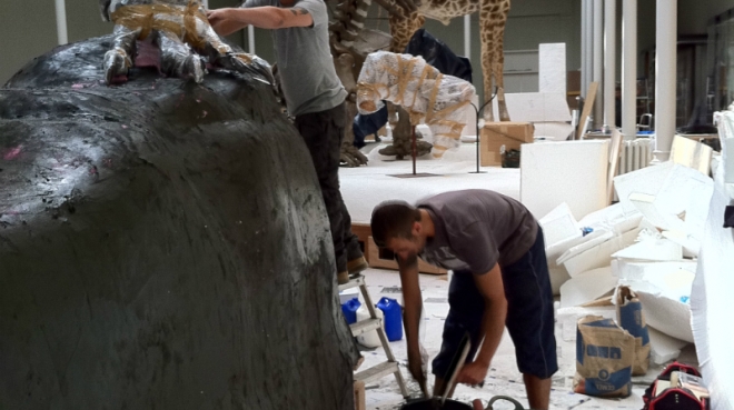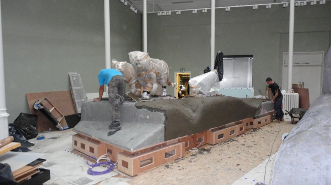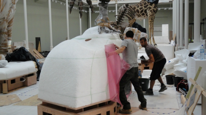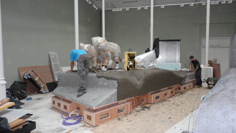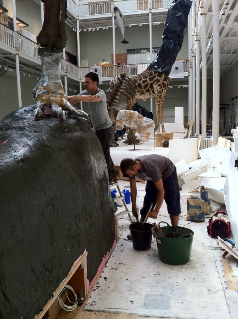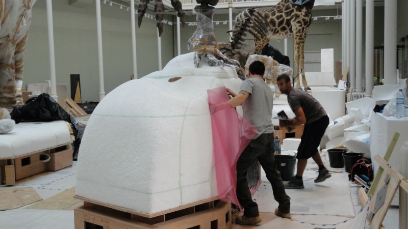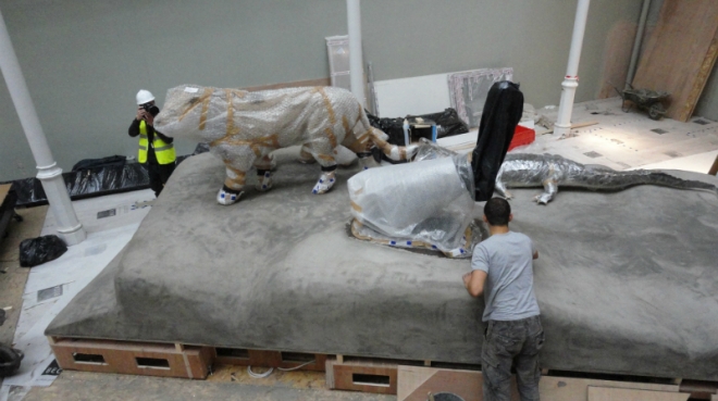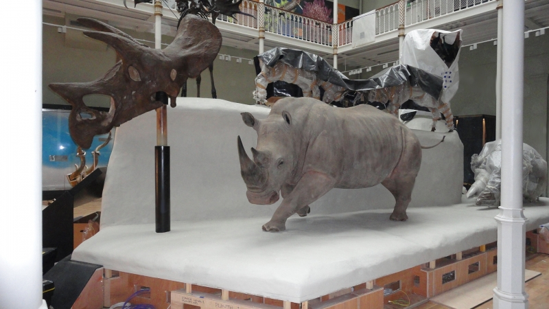 Poly and rendered bases for the stuffed animal exhibits and skeletons.